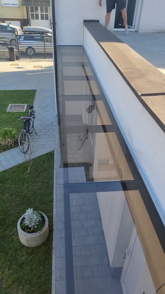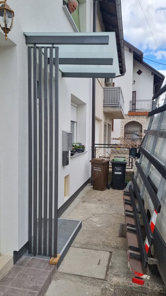 Staklene nadstrešnice-izradjujemo  i ugradjujemo  sve vrste staklenih  nadstresnica.Arhitektonska rijesenja sve vise zahtijevaju ojaćane konstrukcije a debljina stakla koja se koristi je od 8mm-20mm , staklo je kaljeno,laminirano .